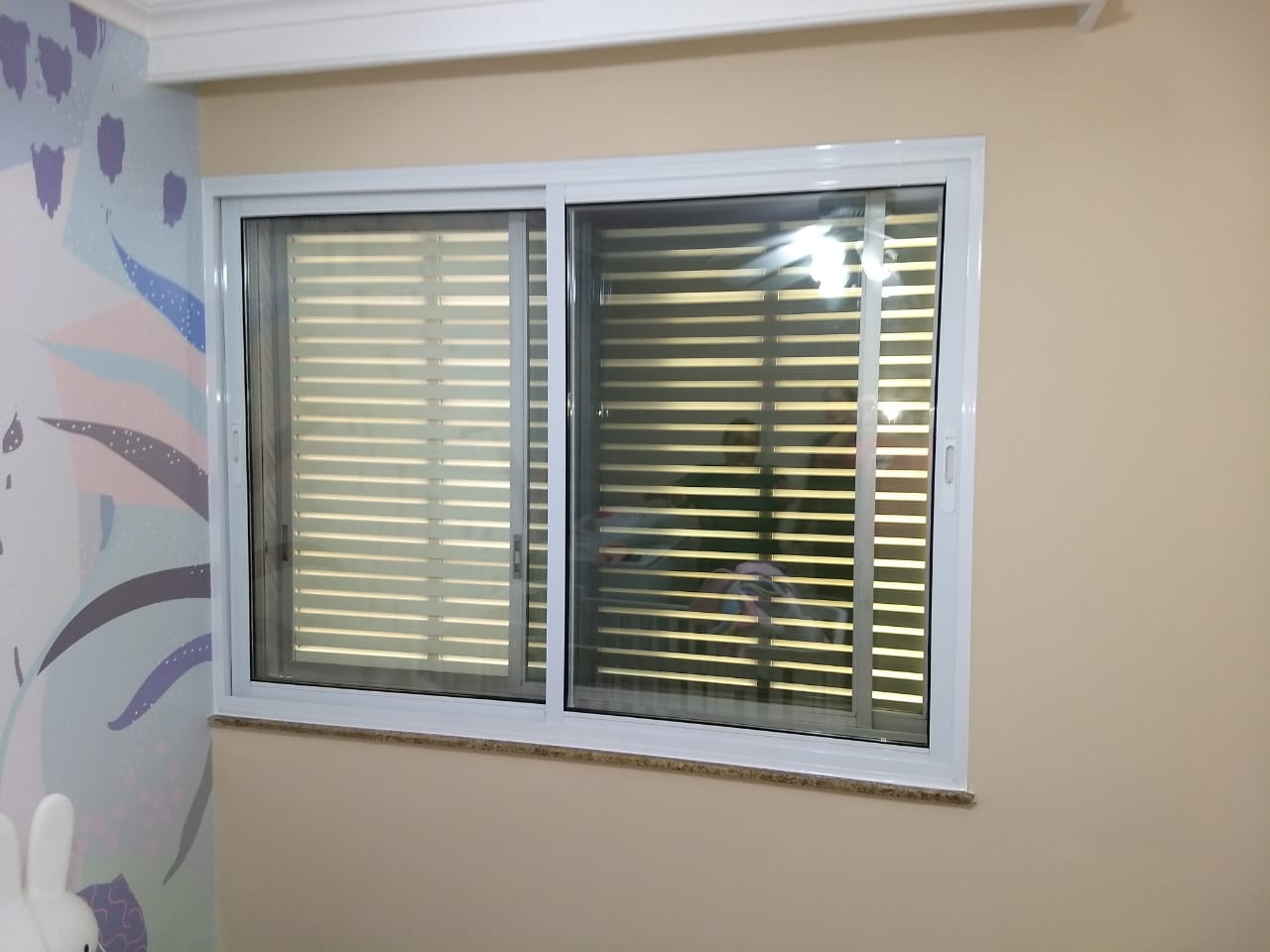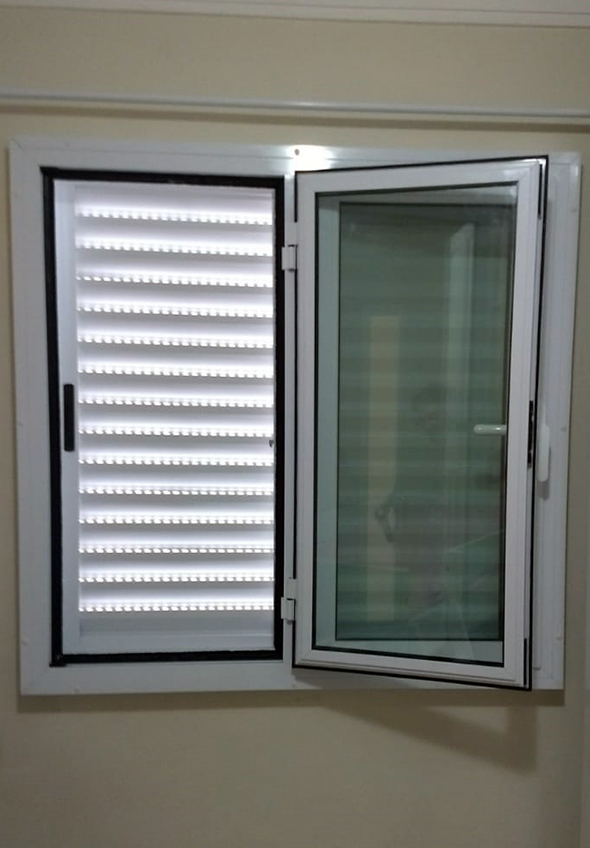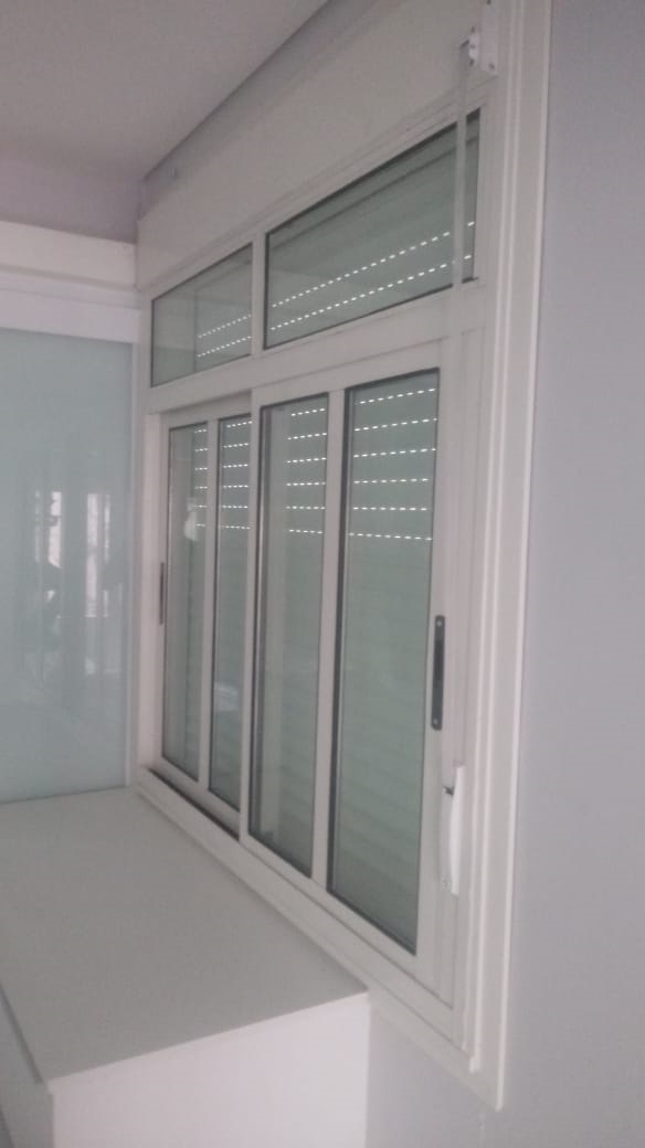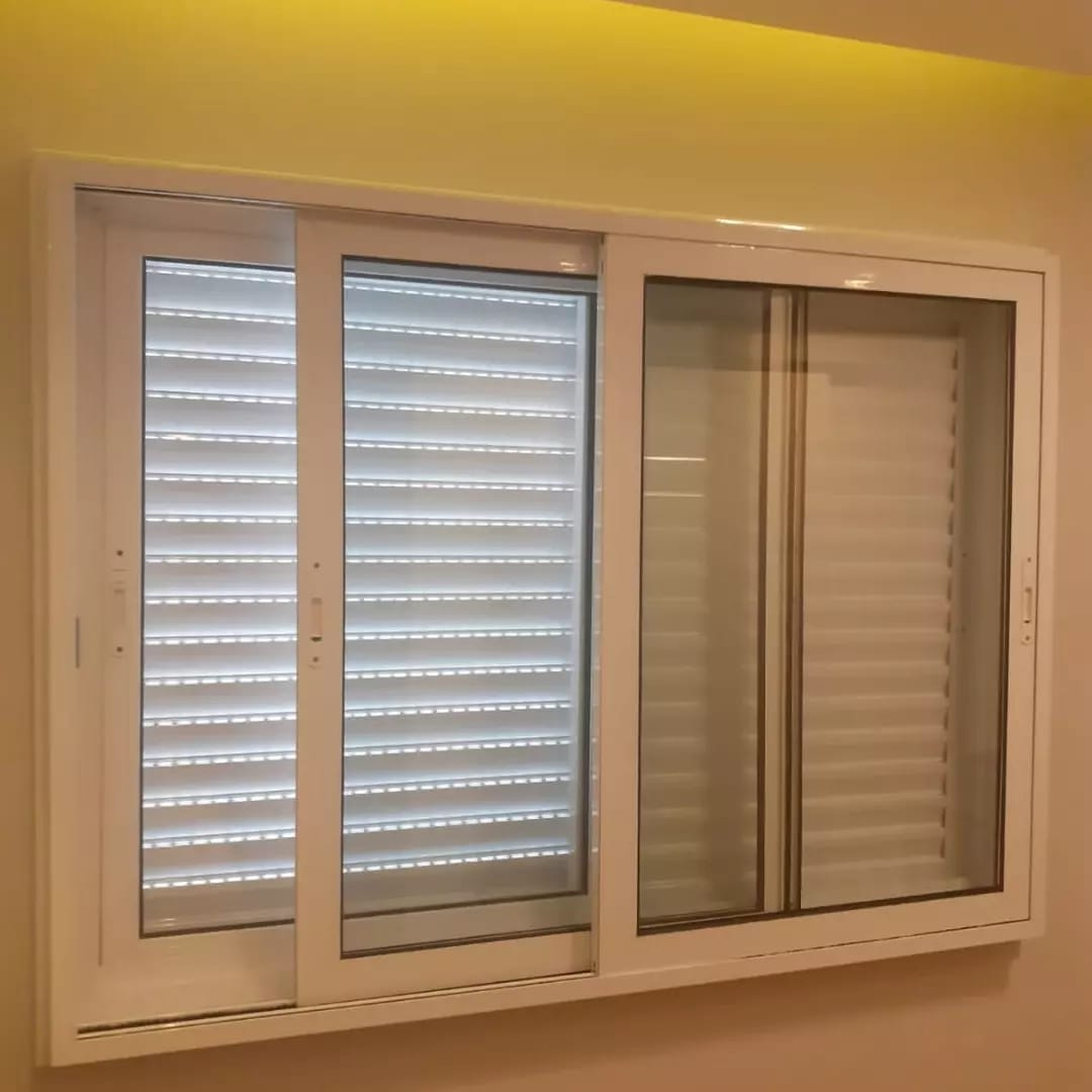 Janela com persiana e dois módulos fixos