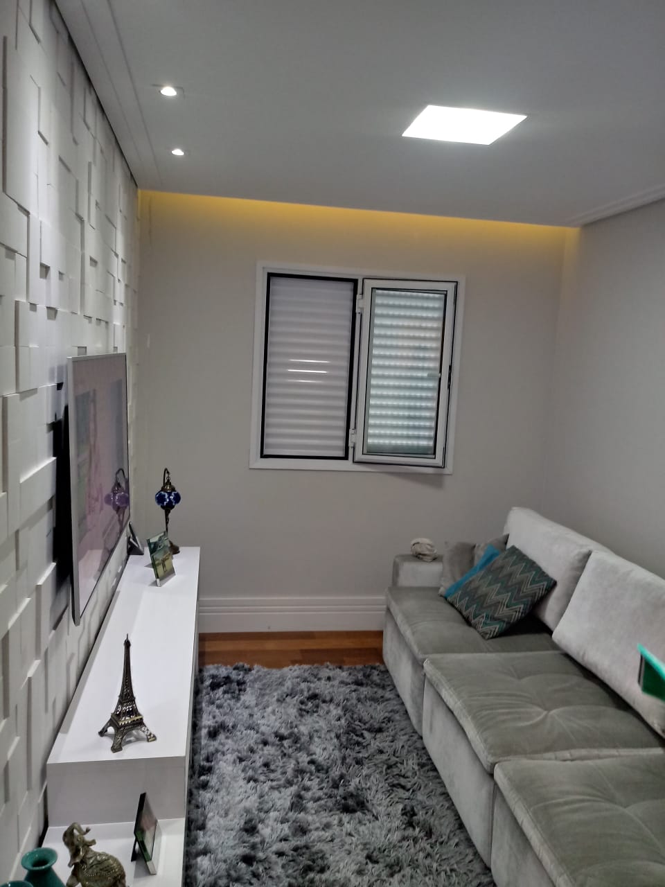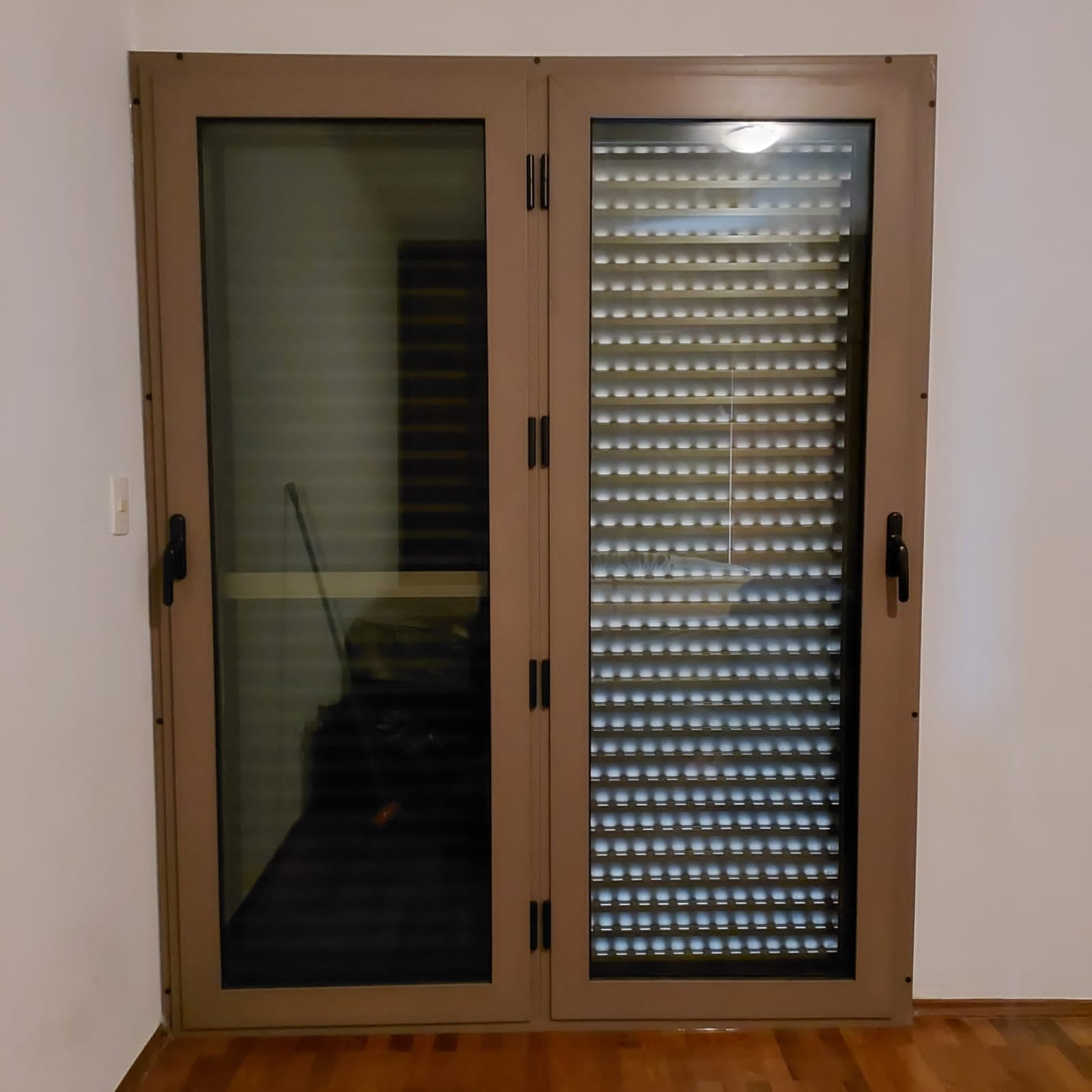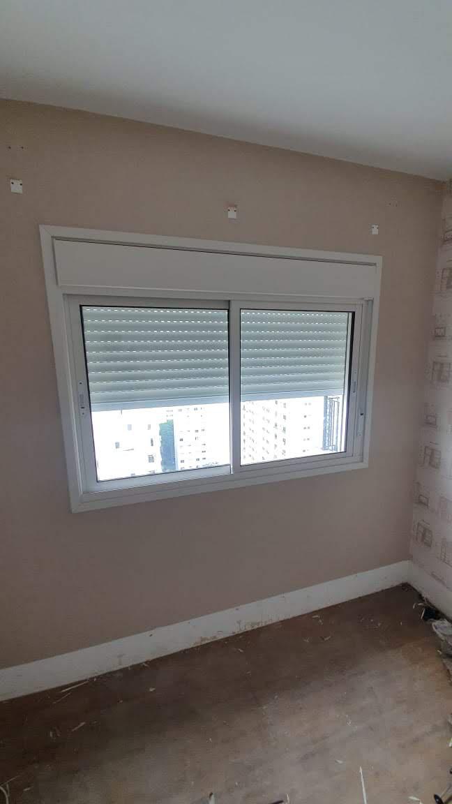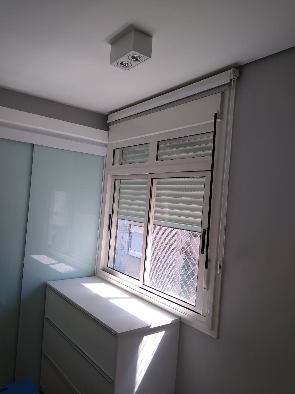 Janela com persiana e dois módulos fixos