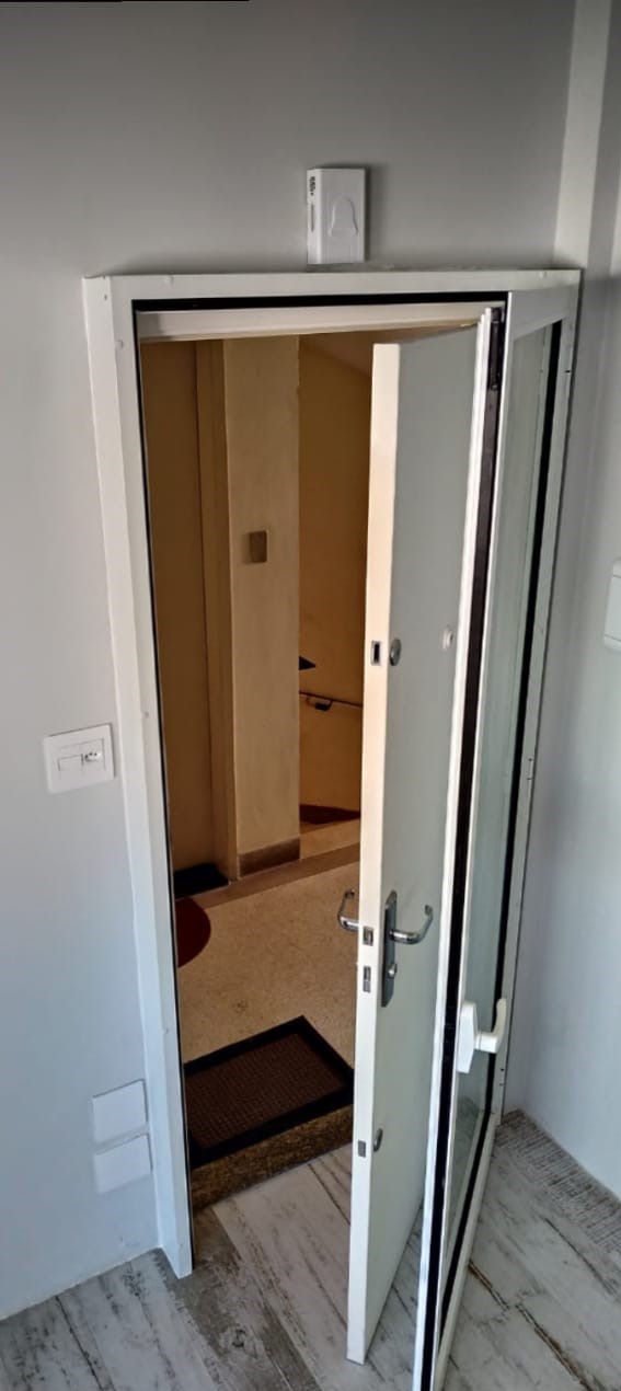 Porta acústica de giro total com barra anti-panico