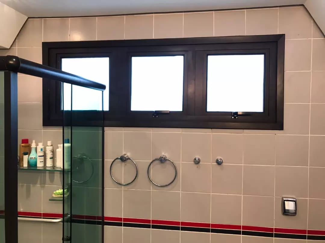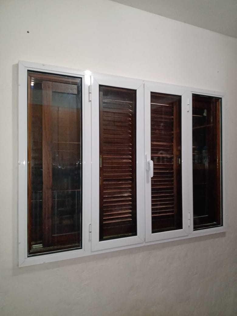 Janela de correr com 04 folhas de vidro e venezianas