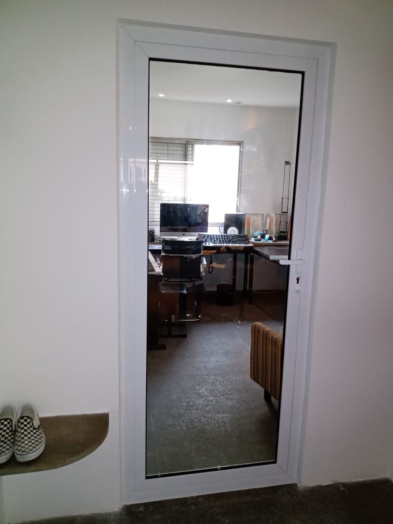 Porta com vidro fixo na parte superior