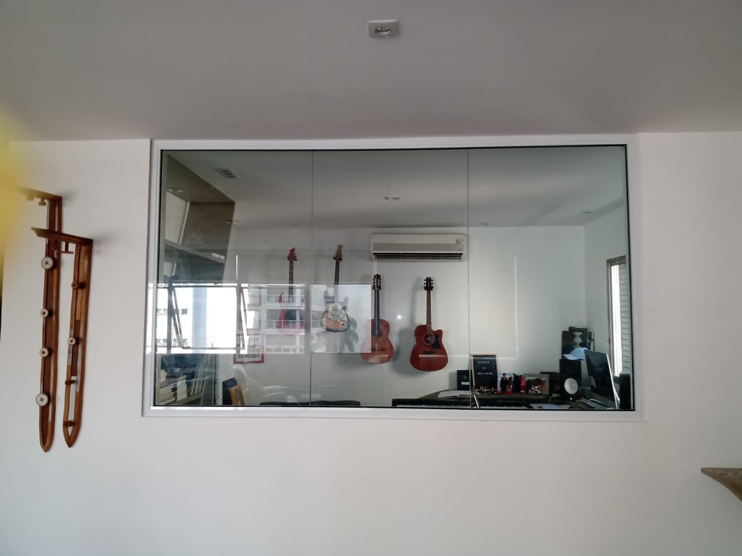 Janelas acústicas de giro com fixo e lambril